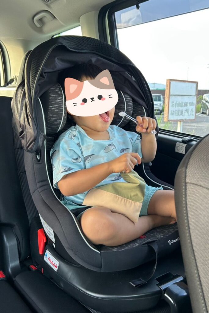 運転中、静かだな〜寝ているのかな?と思って振り返ってみると、登園バック(午前中保育園に行っていたため)から歯ブラシと歯磨き粉を取り出し、車の中で歯磨きをしていました。